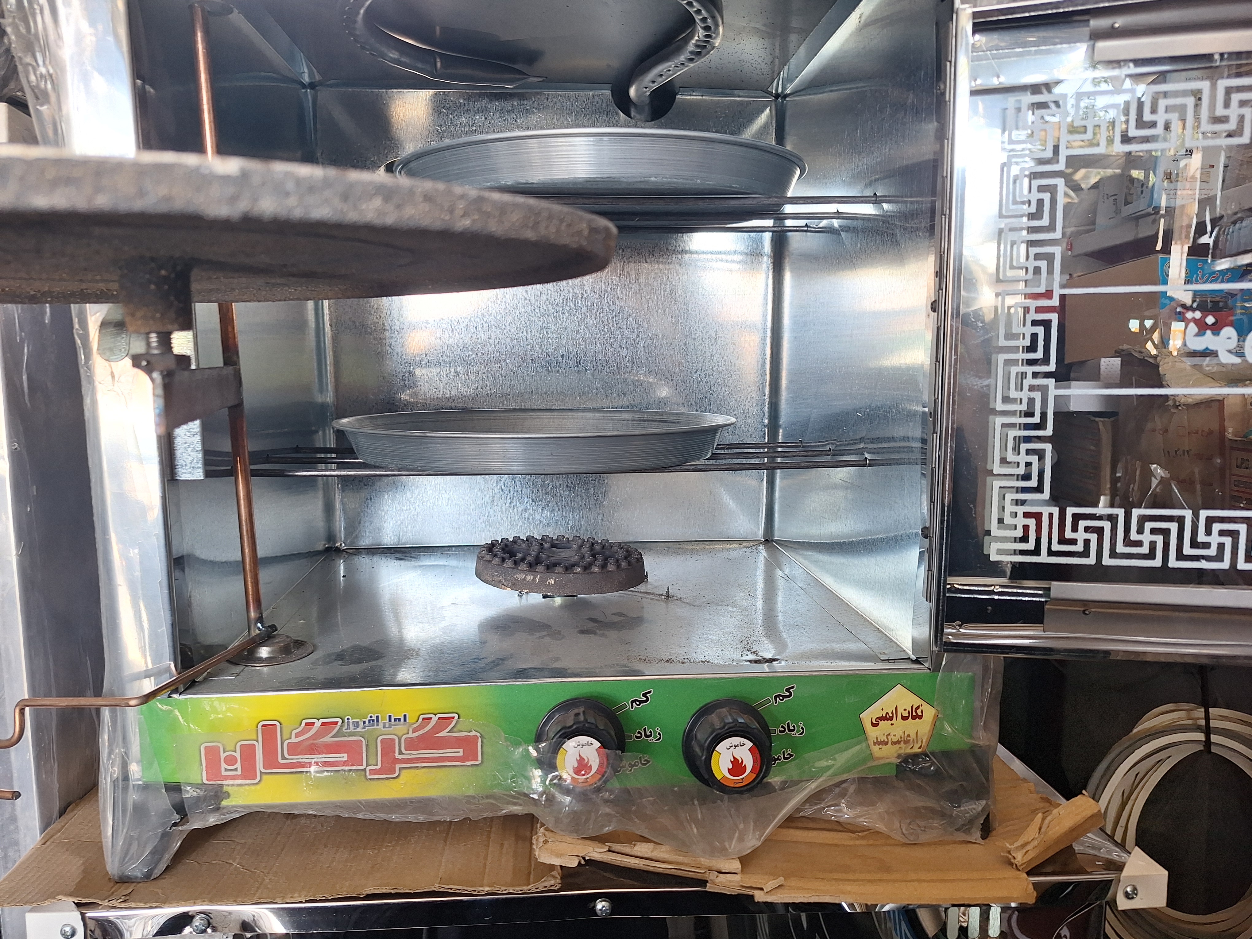 تنور گازی دوسینی و یک سنگ به قطر 38 سانتی متر تمام استیل.